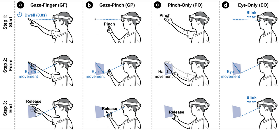 Input: Gaze + Pinch, Gaze + Finger, Gaze + Handray