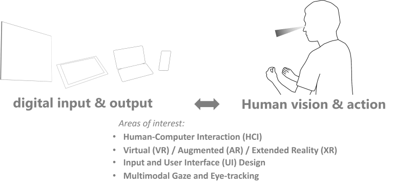 My research interests lie in the area of human-computer interaction, UI design, adaptive systems and eye-tracking. I am interested in the exploration of experimental and radically novel interface designs of the future, and rethinking how existing devices and interfaces can be augmented by integrating new technologies and sensors. This includes the design of interaction techniques for tablet computers, multimodal and AI-driven systems, virtual and augmented reality, in the pursuit to explore new interactive capabilities to empower users.